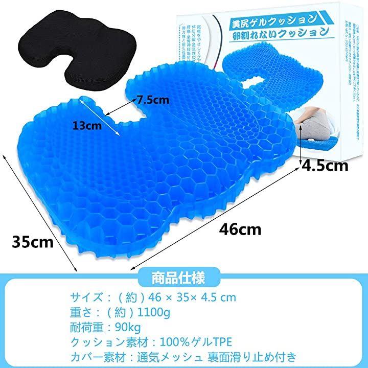 ユニークU形デザイン、尾椎に優しい;二重ハニカム構造、通気性抜群;人間工学に基づいたデザイン、体圧分散効果抜群;100%TPEゲル素材、クッション性と耐久性優れ。