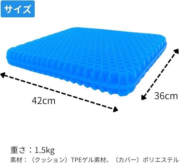 「商品仕様」サイズ:42x36x6cm 重さ:1.5kg 素材:(クッション)TPEゲル素材、(カバー)ポリエステル