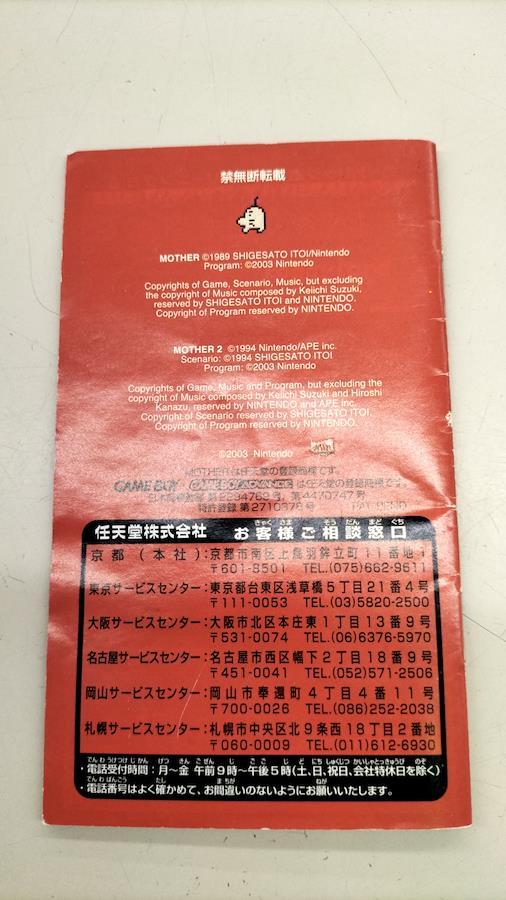 ゲームボーイアドバンスソフト MOTHER1+2 NNTENDO ゲームボーイアドバンスソフト NNTENDOMOTHER1+2ゲームボーイアドバンスソフト