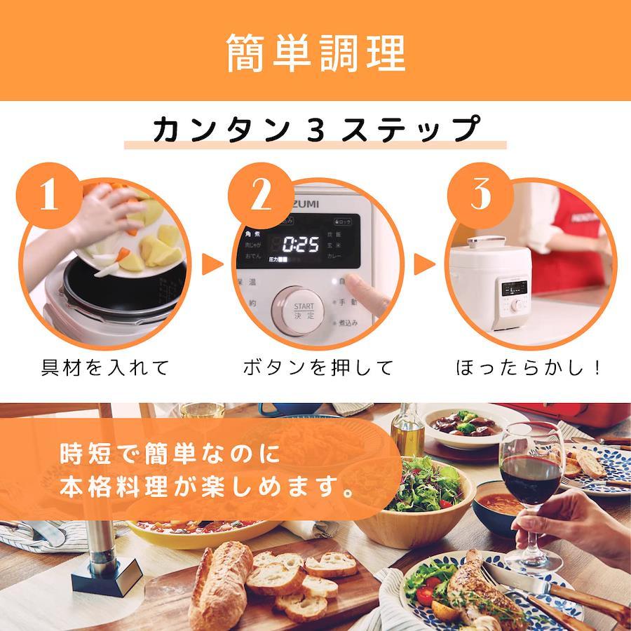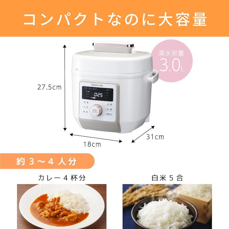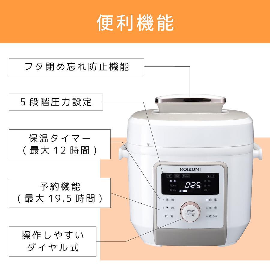 3営業日以内に発送≪新品未開封品≫:コイズミ マイコン電気圧力鍋 2.0L 6種類自動メニュー ワンタッチ 55品搭載レシピブック付き ホワイト KSC-4501/W