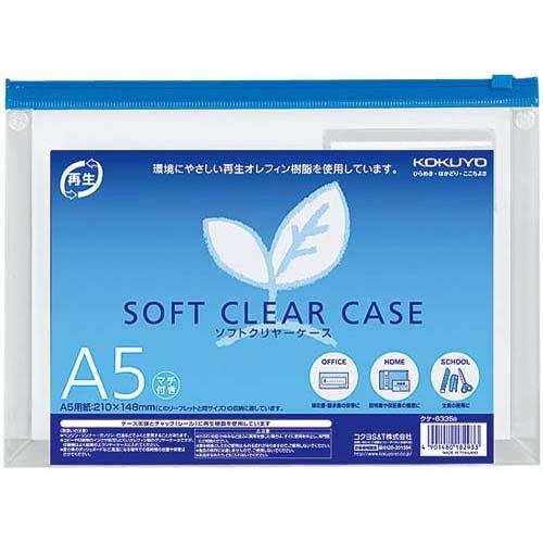 チェック付きなので書類の抜け落ちや紛失を防ぐ。ソフト(軟質)タイプのコクヨクリヤーケース。厚みのある物もしっかり収容できるマチ付きです。●サイズ/A5マチ付き●外寸法/タテ185×ヨコ255×マチ幅30mm●ケース内寸法/タテ170×ヨコ230×マチ幅29mm●材質/本体:再生オレフィン樹脂40%、チャック:再生PP50%●厚さ/0.25mm●単位(入数)/1パック(20冊入)●メーカー品番/クケ-6335B×20