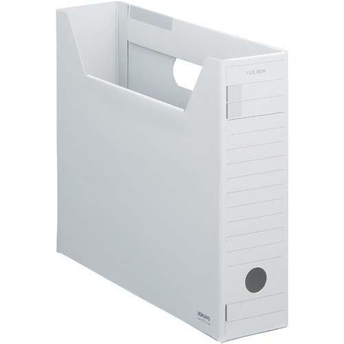 コクヨインターグレイシリーズのファイルボックス。特殊コーティングで汚れにくいタイプです。●カラー/グレー●サイズ/A4横スリム●寸法/奥行317×高さ260×背幅75mm●材質/色厚板紙(古紙配合)●ワンタッチ底●単位(入数)/1パック(5個入)●メーカー品番/A4-SFFN-M×5