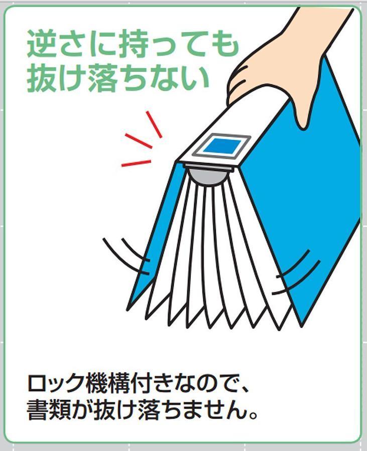 ●ロック機構付きのとじ具を採用しており、とじ具の開きを押さえ、書類が抜け落ちないようになっています。