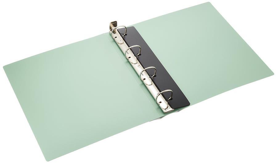 レバー操作するだけで開閉できるPP表紙のロック付き4穴リングファイルです。