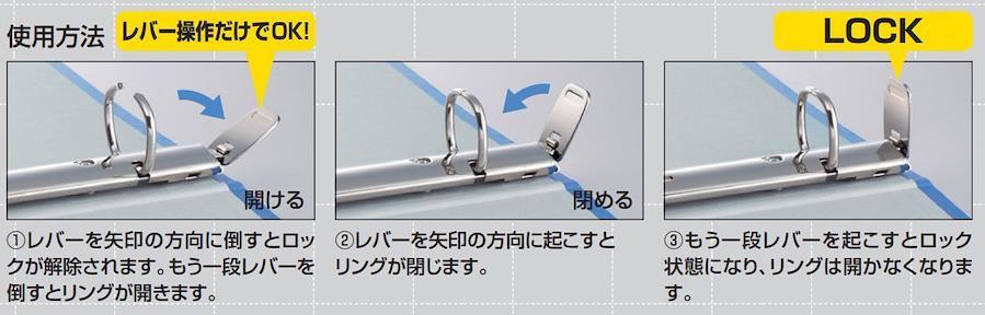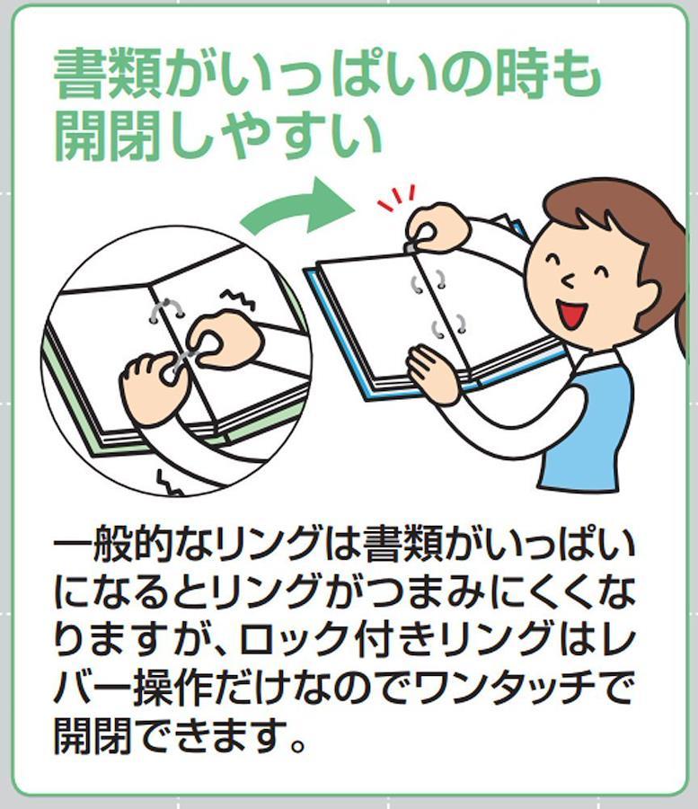 コクヨ独自の新機構により、リングの開閉、ロックを片手で簡単に操作できます。【免責事項】メーカーによる商品リニューアルに伴いパッケージが変更が行われた場合、新パッケージでお届け致します事ご了承願います。
