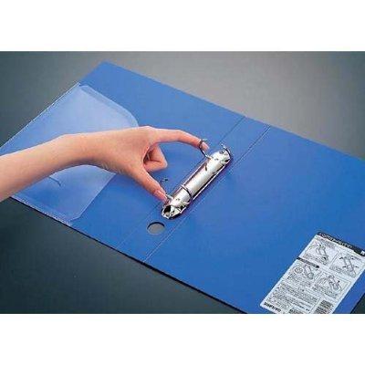 ワンタッチで開くリングを採用。リングを内側につまむとロックが外れラクに開きます。棚から取り出しやすいフィンガーホール付き。●カラー/青●サイズ/B5タテ●寸法/タテ267×ヨコ225×背幅39mm●リング内径/30mm●収容枚数/220枚●表紙材質/再生PP50%●表紙厚/約1.17mm●穴数/2穴(80mmピッチ)●書類を保護するプロテクター付き●表紙ポケット付き●ユニバーサルデザイン●単位(入数)/1箱(10冊入)●メーカー品番/フ-UR431B×10