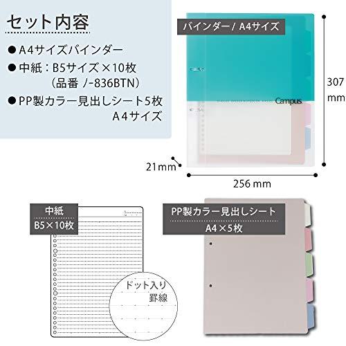 【セット内容】・中紙にはルーズリーフ10枚(B5サイズ)と、PP製カラー見出しシート5枚(A4サイズ)が入っています。・裏表紙には内ポケットがついています。