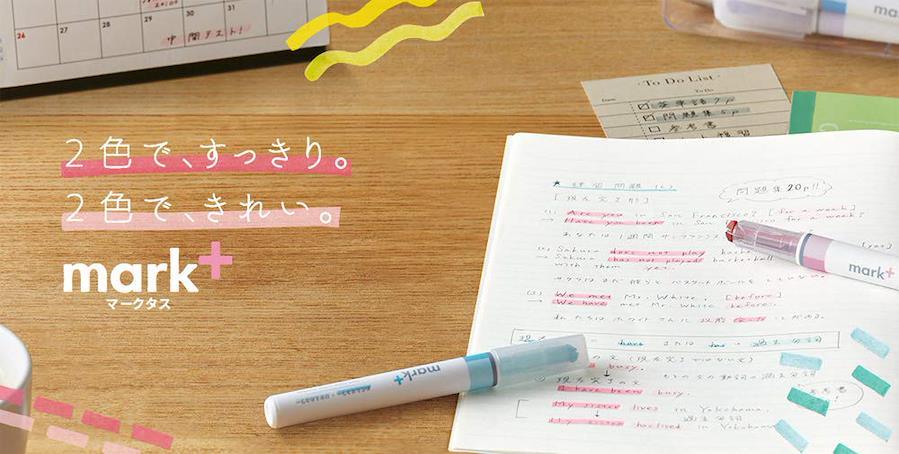 ●1本で2色のマーキングができるので、ペンケースがかさばりません。