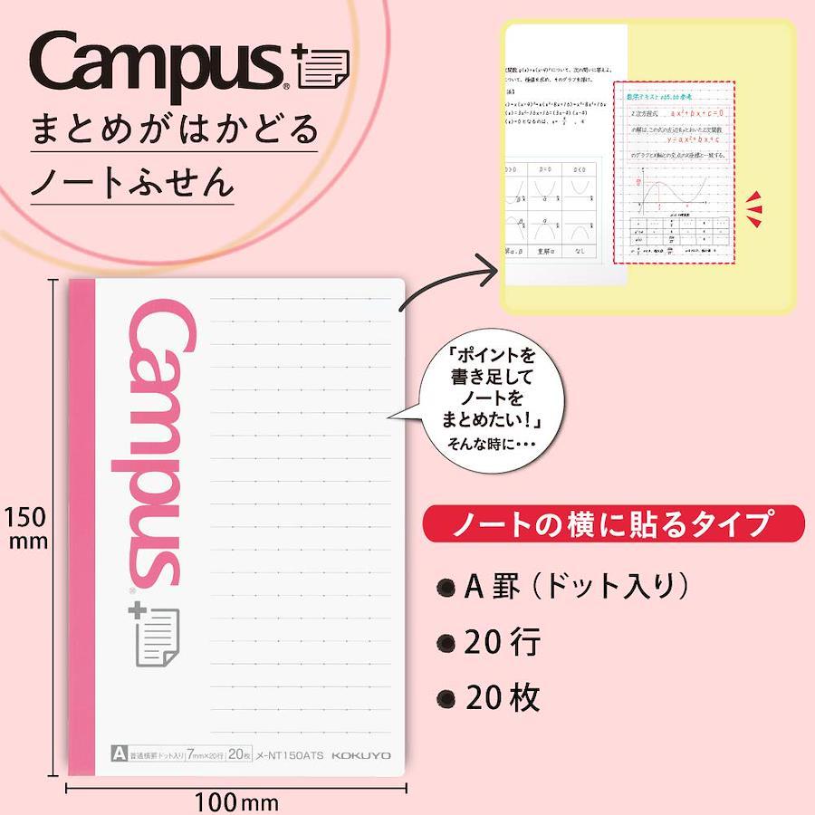 【ノートふせんの特長】・ノートに貼っても見やすいサイズ。・持ち運びやすいカバーのついたノートタイプ・キャンパスノートと同じ原紙を使用しているので、ノートと一緒に使いやすい。・両面にドット入り罫線が印刷されているので、文字や図表がきれいに書ける。・糊に沿って入ったミシン目に沿って折り返すとすっきりきれいに閉じられ、何度も折り返してしまえます。