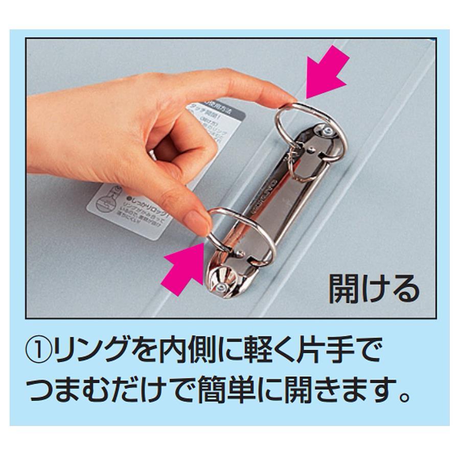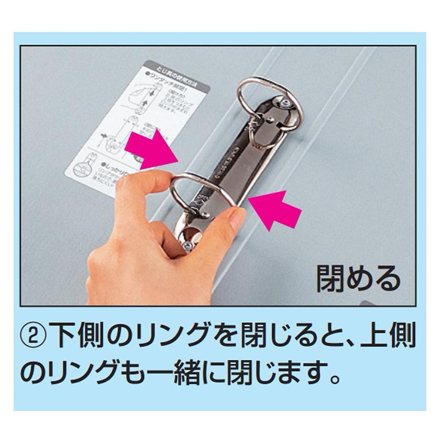●ワンタッチで開閉する金属とじ具を使用した張り表紙のリングファイルです。●とじ具がしっかりかみ合っているので、書類が抜け落ちる心配がありません。
