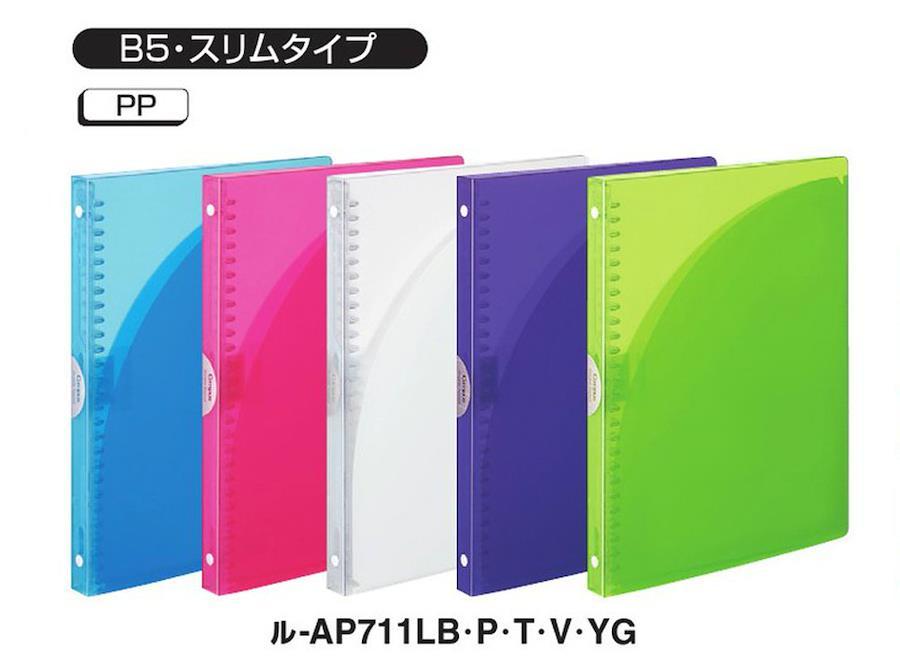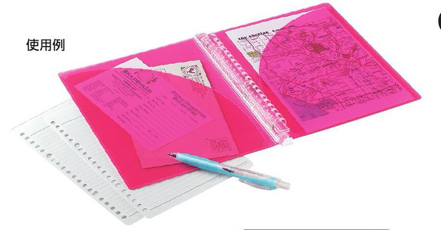 ●スリムで軽く、ポケット付きのカラフルなバインダーです。●付属品がないので自分が必要なものだけをファイリングしたり、好きなルーズリーフを挟んでオリジナルにアレンジできます。●プラスチックとじ具で軽く、背幅が薄いので、カバンの中でもスペースをとらず携帯に便利です。●表紙の内側にポケットが付いており、書類などの一時保管に役立ちます。また、片側のポケットには名刺などのカードが入れられる切り込みが入っているので大変便利です。●表紙ととじ具は分別廃棄できます。