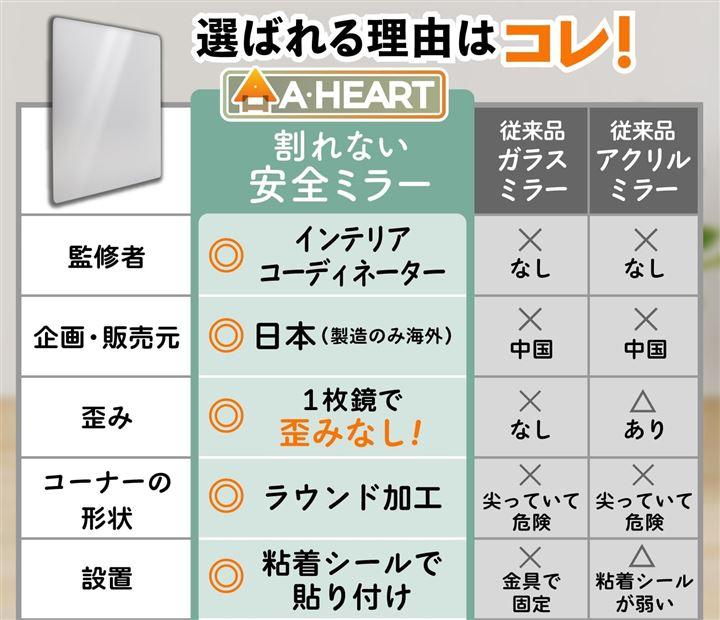 AHEARTのミラーは専門家がW監修した、理想のどこでも貼れる割れないミラーです。