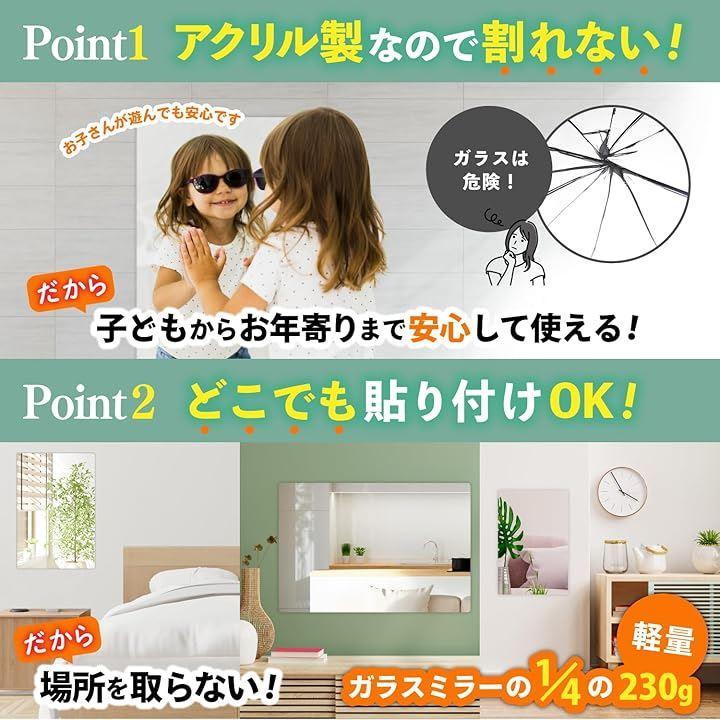 玄関の確認鏡、姿見鏡、クローゼットドア用のミラーなどいろんな場所で使えます。