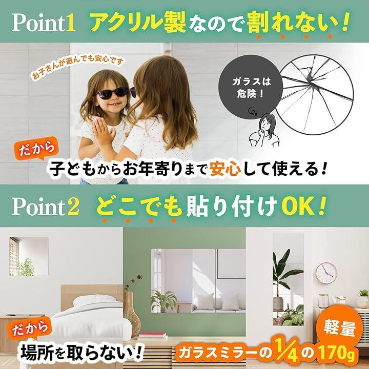 「皆様のお悩み解決」クローゼットのドアに貼りたい、落下して飛散するのが怖い、とがった角でけがをしそう、賃貸住宅に壁掛け鏡を設置したいけどできない、などお悩みと不安を解決する鏡です。