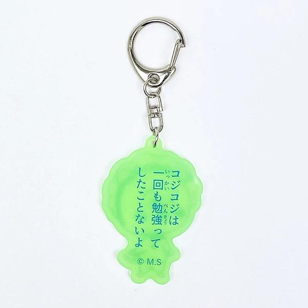 暗いところでほんのり光る、蓄光タイプのアクリルキーホルダーです。裏面にはコジコジの名言?がプリントされています♪鍵やお財布、自転車のキーなどにつけておけば、暗い場所でもすぐに見つけられて便利◎