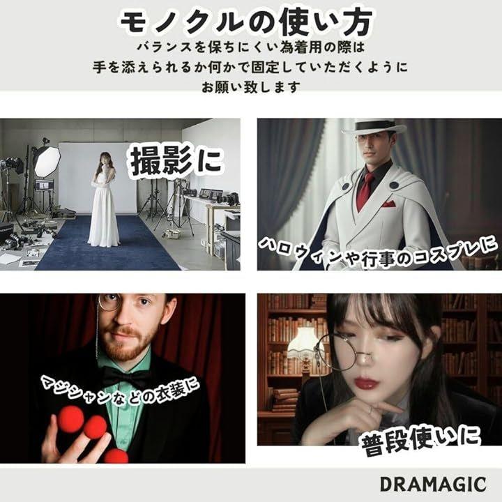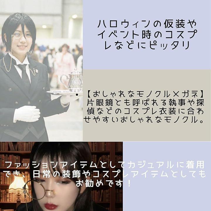 このスタイリッシュなモノクル片眼鏡は、執事や怪盗風のコスプレに最適な男女兼用のアクセサリーです。