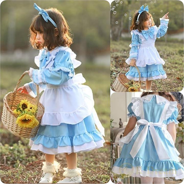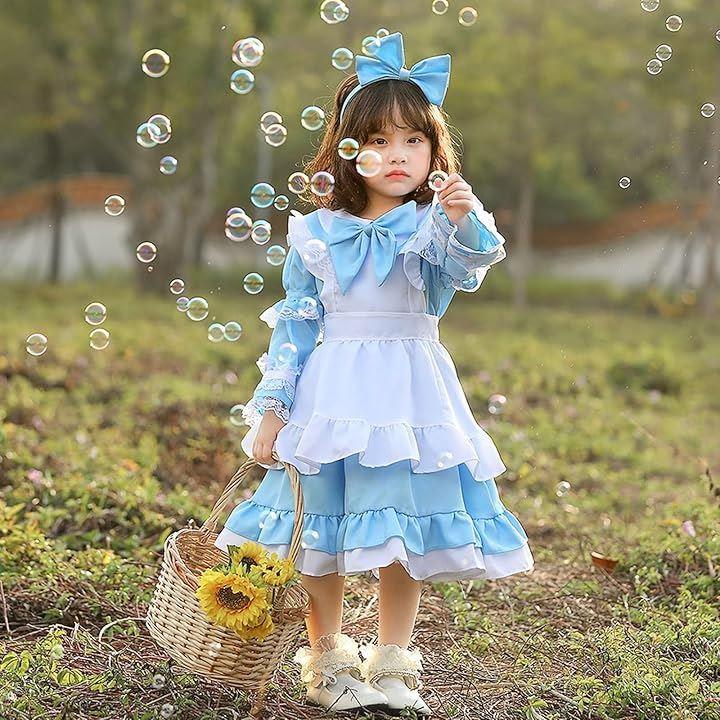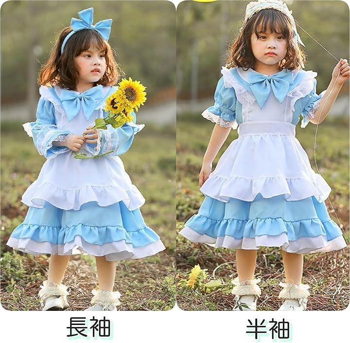 「セット内容」ワンピース+カチューシャ+リボン(安全ピン)+付け袖 「カラー」ブルー 「サイズ」S, M, L, XL, XXL *Sサイズ>身長90-100cm、バスト64cm、ウエスト58cm、裾丈60cm / *Mサイズ>身長100-120cm、バスト68cm、ウエスト58cm、裾丈63cm / *Lサイズ>身長120-130cm、バスト72cm、ウエスト65cm、裾丈66cm / *XLサイズ>身長130-140cm、バスト76cm、ウエスト69cm、裾丈70cm / *XXLサイズ>身長140-150cm、バスト82cm、ウエスト72cm、裾丈76cm *平置き採寸。