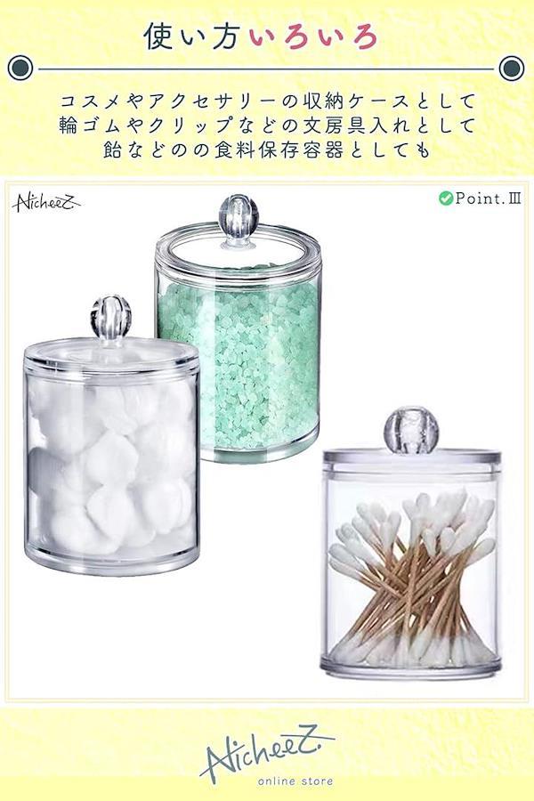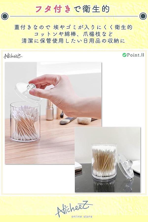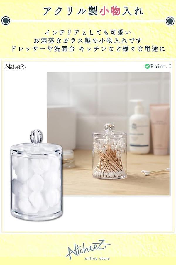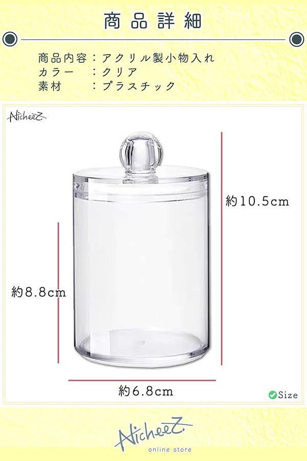 コットンや綿棒、爪楊枝など清潔に保管使用したい日用品の収納にオススメのアクリルジャーです。