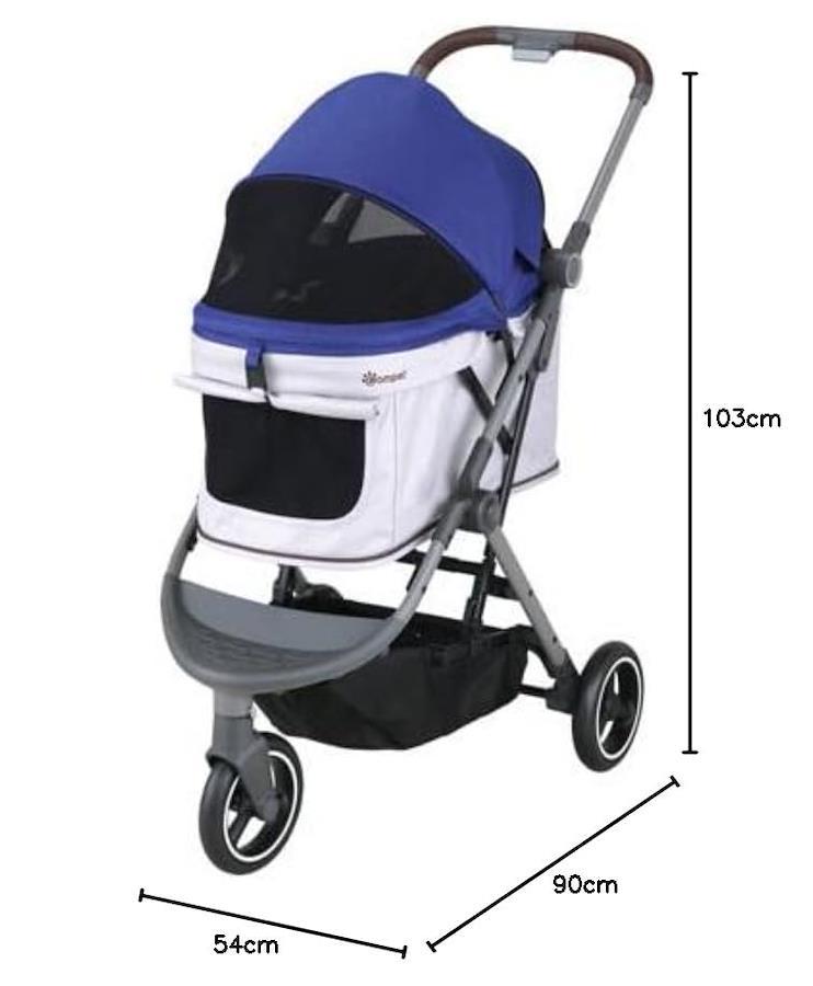 [使用時]W543×D900×H1035mm [折畳時]W543×D485×H670mm [キャリー内寸(幌を除く)]W300×D600×H250mm重量 6.3kg耐荷重 20kg(2匹まで)荷物カゴ耐荷重 5kg※本製品には専用リードが2本付属します。