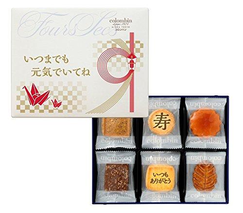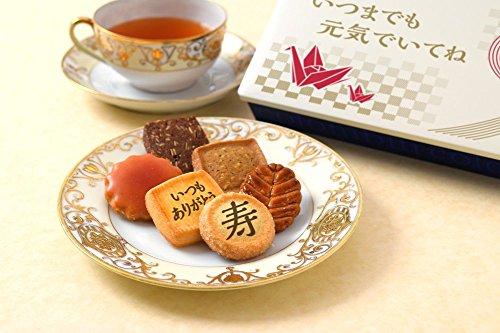 缶の蓋には「いつまでも元気でいてね」、バニラ味のクッキーには「寿」、パルミジャーノレジャーノクッキーには「いつもありがとう」の文字が入ったデザインのクッキー詰め合わせです。流行に左右されない味、シンプルさを追求し、素材にこだわった贅沢な焼菓子です。味や色の違う生地を使用していますので、ティータイムに彩りを添え、バラエティー豊かな味をお楽しみいただけます。日頃の感謝の気持ちを込めた贈り物として、敬老の日はもちろんお誕生日や還暦、喜寿など長寿のお祝いにもご活用いただけます。