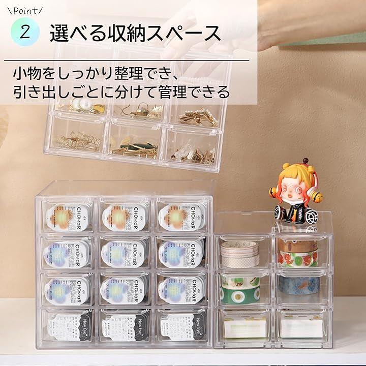 コンタクトレンズはもちろん、アクセサリーやコスメ、文房具などの小物もしっかり整理でき、引き出しごとに分けて管理できるので、取り出しやすく使い勝手も抜群です。