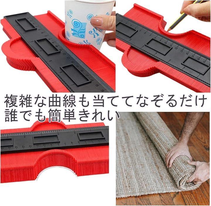 コンターゲージはカーペットやクッションフロアをDIY作業する際に複雑な形状のコーナー部分へ押し当て角度をコピーします。