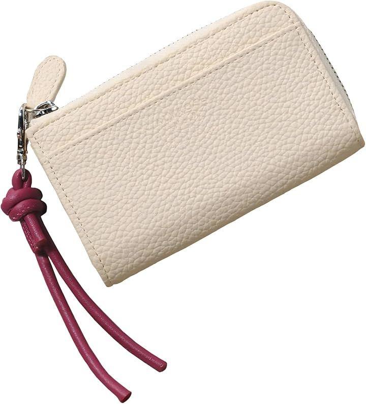 「素材」合成皮革 「仕様」開閉:ファスナー、内側:オープンポケットx1、キーチェーンx1、外側:オープンポケットx1、カードポケットx4、チャームx1 「サイズ」横幅:13.5cm、高さ:8.5cm、マチ:2.5cm 「重さ」約100g