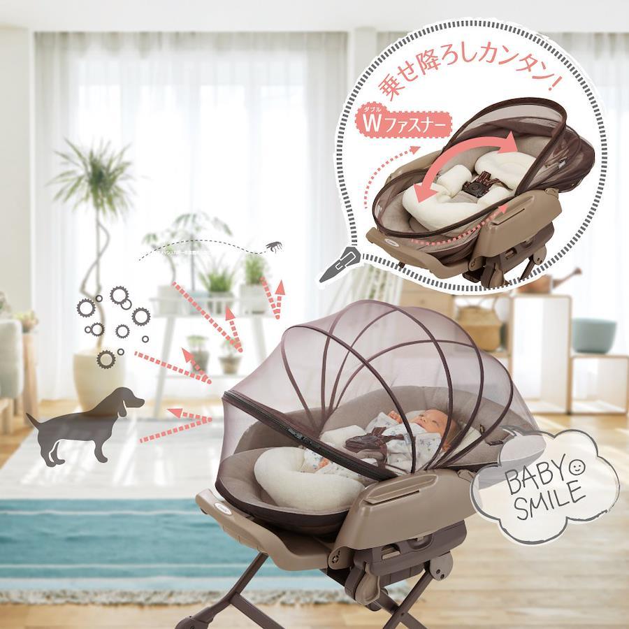 ●赤ちゃんを守る、安心ポイント1.虫除け剤を使わずに赤ちゃんを守る。2.毛やホコリの侵入カット率97%以上3.まぶしさ軽減やエアコンの風よけにも活躍●赤ちゃんを虫や毛・ホコリ、まぶしさやエアコンの風から守るスウィングベッド&チェア専用カバーです。●開閉位置が調整できる「Wファスナー」で乗せ降ろしがカンタンです。●赤ちゃんとママ、お互いの顔が見えやすいブラウンカラーのメッシュ素材を採用しました。●オールシーズン使えて、赤ちゃんを一年中守ります。●対応製品(2018