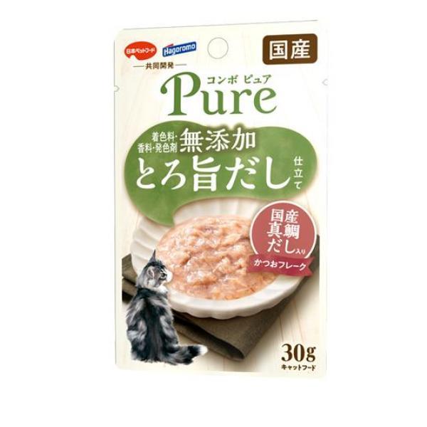 製品の特徴●日本ペットフード COMBO Pure コンボ ピュア キャット パウチ かつおフレーク・国産真鯛だし入り●はごろもフーズ(株)と共同開発!素材、本物にこだわり抜いた、混じりっけないピュアなおいしさ。●気になる添加物は取り除き、本物を追求したブランド。着色料・香料・発色剤無添加。●はごろもフーズ(株)の食品会社としての厳しい品質管理の知識や経験と、日本ペットフード(株)の老舗ペットフードメーカーとしての長年追求してきたおいしさを生かした商品。●魚や肉原料の選別から加工まで食品同様の厳しい基準を設け、高い品質を実現。●国産の真鯛を使用した真鯛だしでかつおのうまみを最大限に引き出しました。●猫ちゃんが食べやすい細かめフレークを、うまみと一緒に閉じ込めたとろ旨だし仕立て。●環境にもピュア。パッケージの印刷に植物由来のインキを一部使用。●30gの食べきりサイズ。●区分:一般食(キャットフード)●フードタイプ:ウェットタイプ●原産国名:日本(国産品)