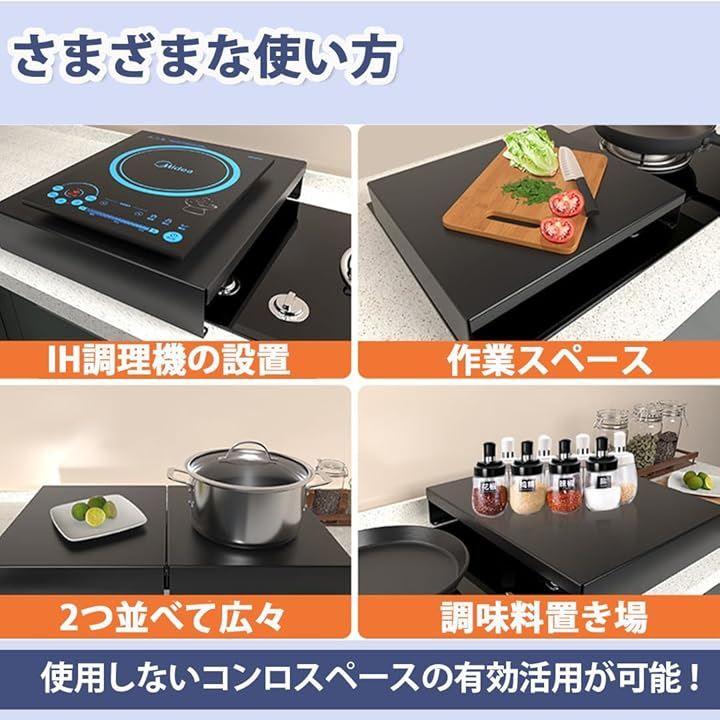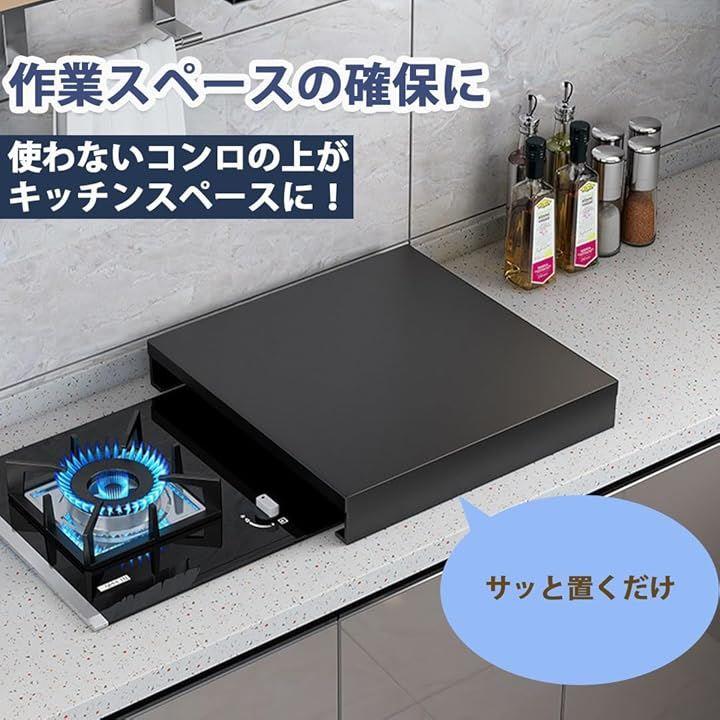 置くだけでコンロ台の上もキッチンスペースとして使うことができるのでとても便利です。