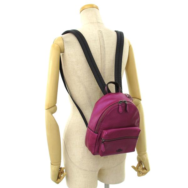 コーチからミニリュックが入荷しました☆可愛く発色が良いピンク系カラーで、コーディネートのアクセントにピッタリです♪小振りなサイズ感のバッグで、ちょっとしたお出かけにピッタリ♪間口はファスナー開閉式になっており、内側にはフリーポケット、ファスナーポケット、正面には小口のファスナーポケット等がございます!☆状態は、本体の型崩れ、表面と内側には薄汚れ、シワ、金具の小傷やくすみ、僅かな小傷やスレ、ニオイが見受けられますが、まだまだ綺麗にお使いいただけますよ!