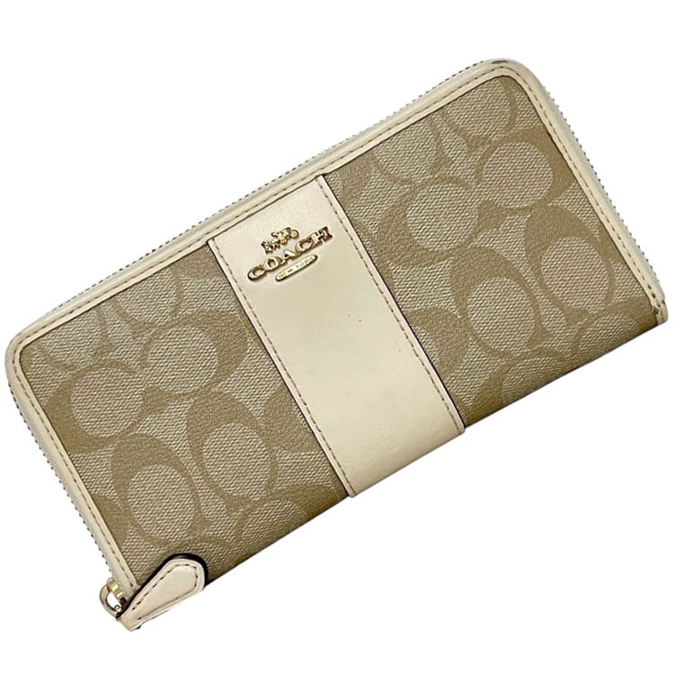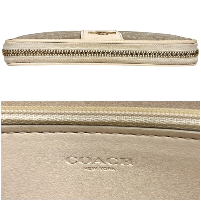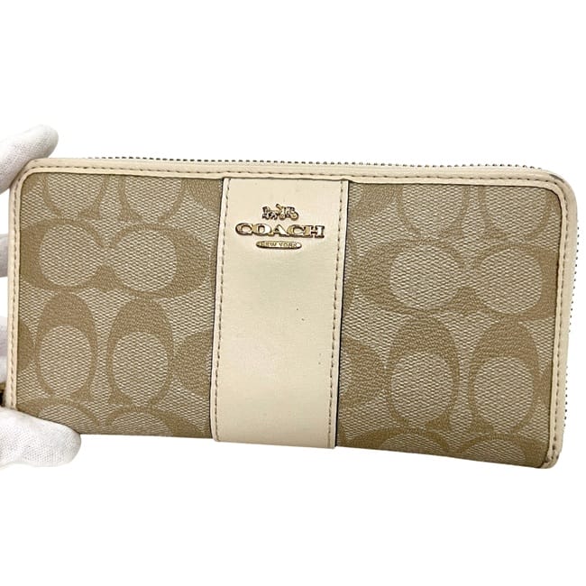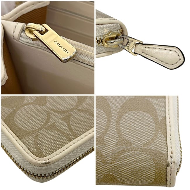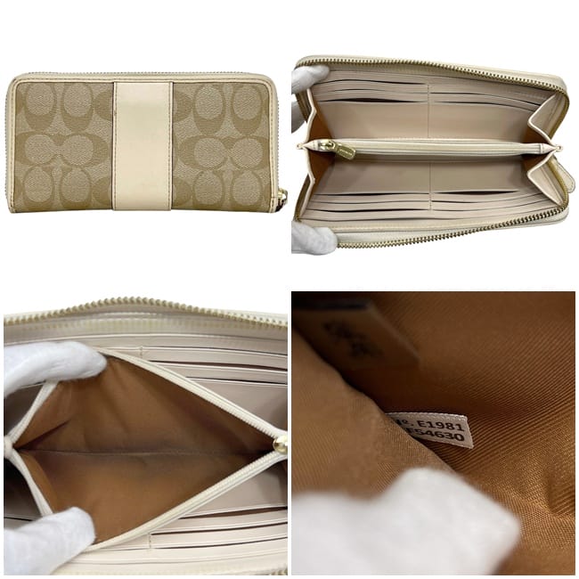 ☆---- 商品について ----☆コーチ ラウンドファスナー 長財布 ベージュ ホワイト 白 シグネチャー F54630 財布 PVC レザー 中古 COACH