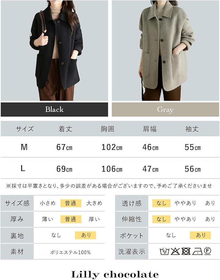 裏地付きで暖かく、秋冬シーズンにぴったりです。