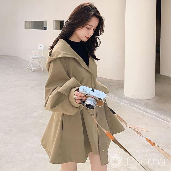 「上品軽やかなポンチョ風シルエットでモードに仕上げる」 上品で軽やかな太ももまでの短めの丈感と、ゆったりと裾に向かって広がるポンチョ風のシルエットに、大振りのフードがスタイルのアクセント。