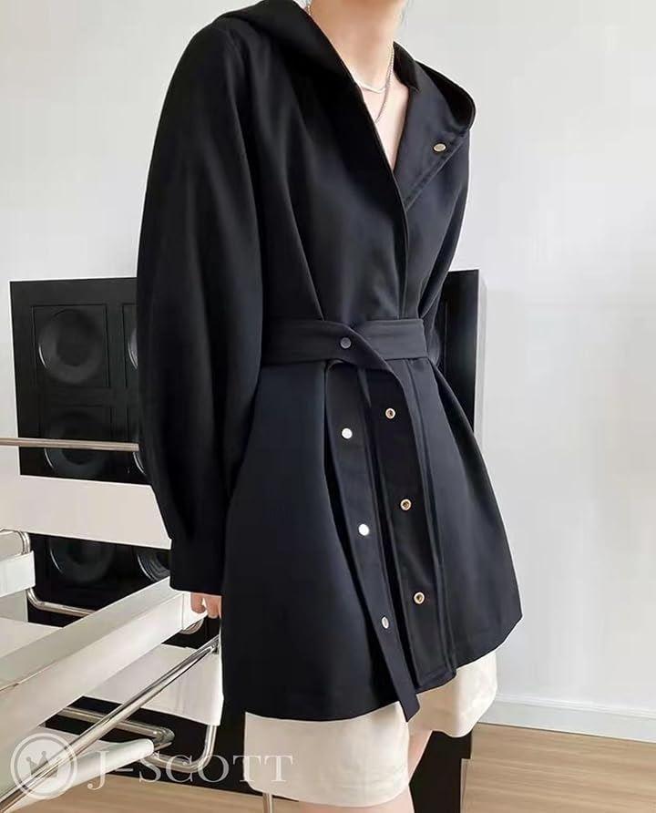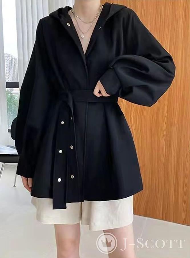 Coats for women, trench coat, spring, hooded, balloon sleeves, A-line, poncho, belted, short length, stylish, casual, around the waist, hooded coat, rich, outerwear, clean, loose silhouette, oversized, cute for adults, JS132