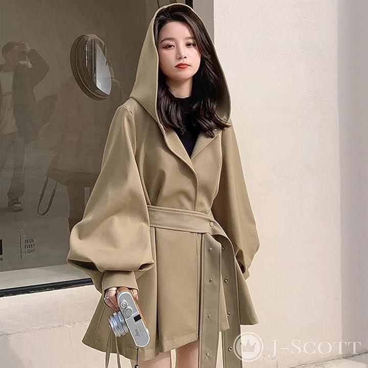 「上品軽やかなポンチョ風シルエットでモードに仕上げる」 上品で軽やかな太ももまでの短めの丈感と、ゆったりと裾に向かって広がるポンチョ風のシルエットに、大振りのフードがスタイルのアクセント。