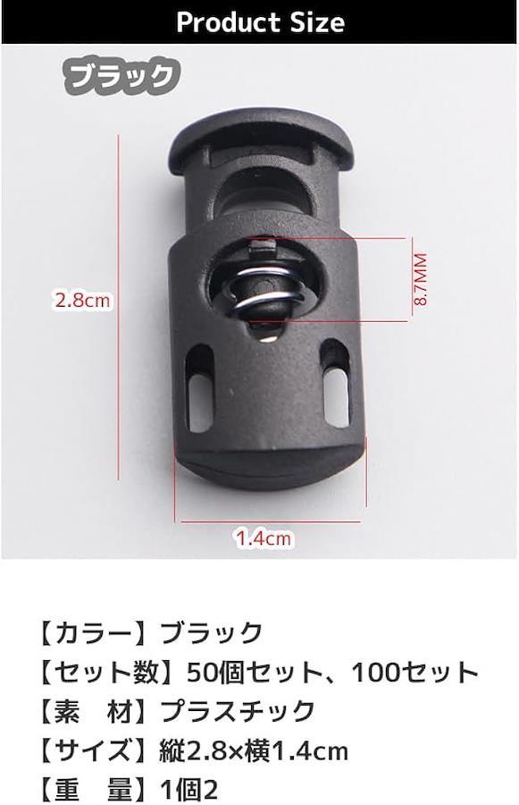 「カラー」ブラック「セット数」50個セット、100セット「素材」プラスチック「サイズ」縦2.8x横1.4cm「重量」1個2g