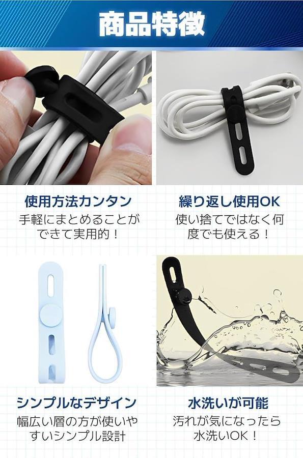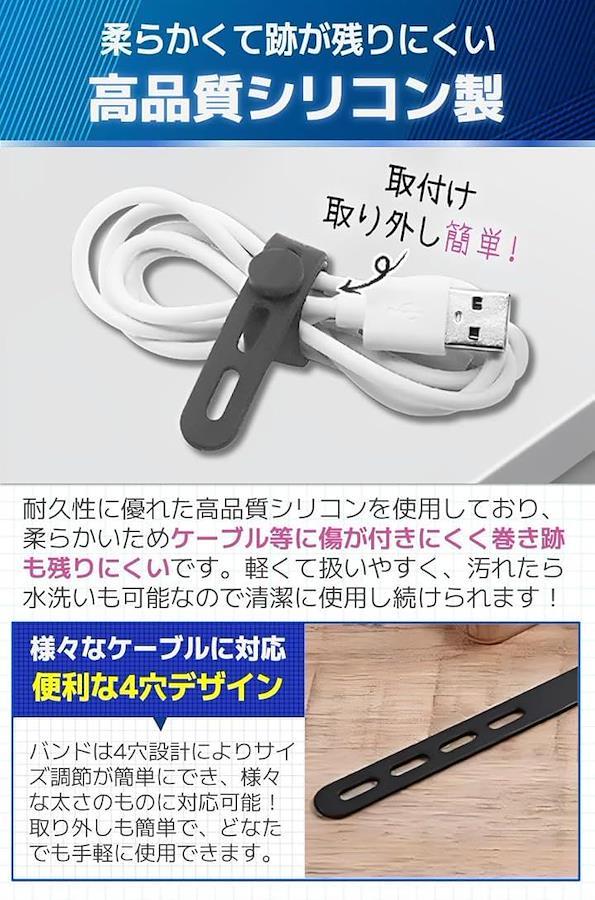 「高品質シリコン製」耐久性に優れた高品質シリコンを使用しており、柔らかいためケーブル等に傷が付きにくく巻き跡も残りにくいです。