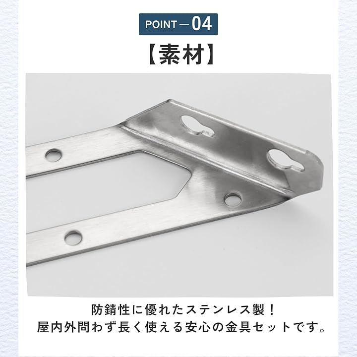 「素材」防錆性に優れたステンレス製。屋内外問わず長く使える安心の金具セットです。