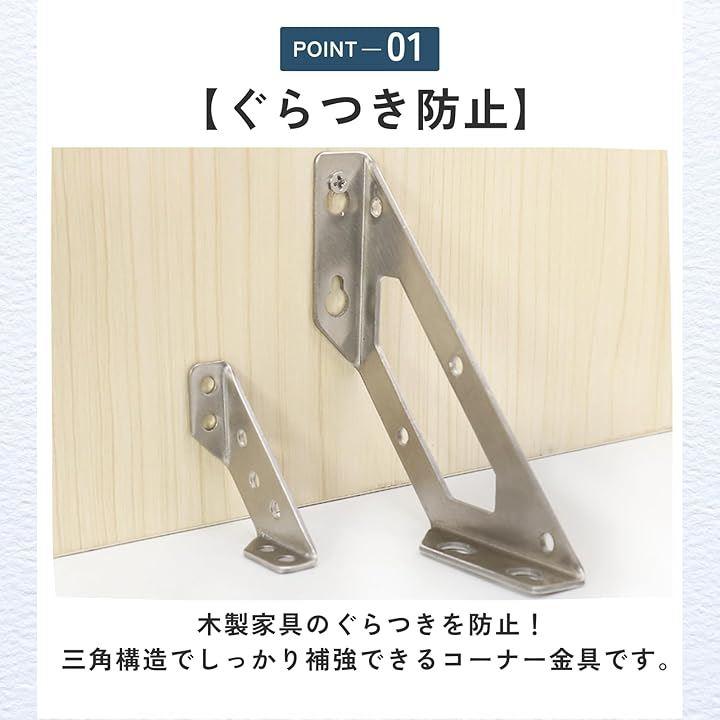 「ぐらつき防止」木製家具のぐらつきを防止。三角構造でしっかり補強できるコーナー金具です。
