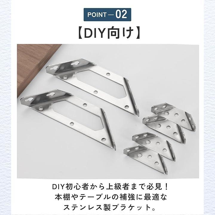 「DIY向け」DIY初心者から上級者まで必見。本棚やテーブルの補強に最適なステンレス製ブラケット。