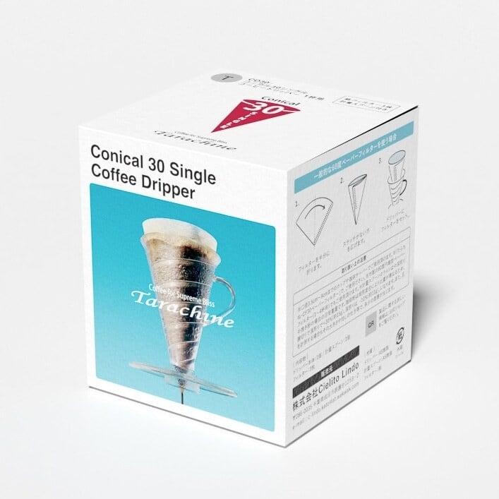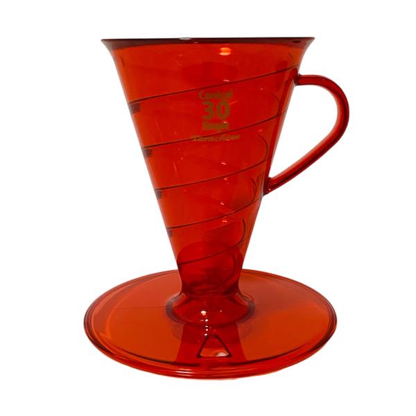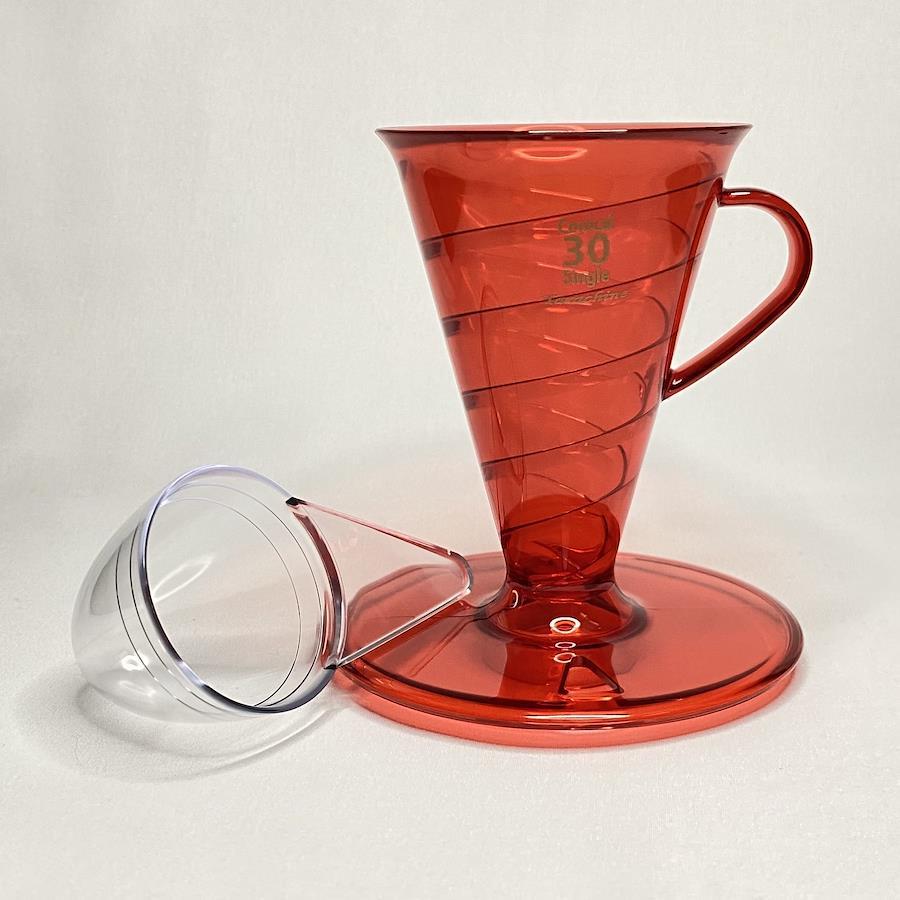 縦約11センチの円錐形ドリッパーで円錐の角度が30°と急角度。 この30°という角度によりドリッパー内のコーヒー層が深くなるため、 1杯分でもコクのあるコーヒーを抽出することができます。