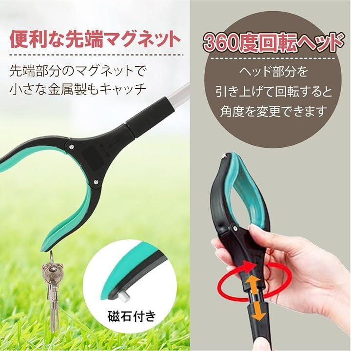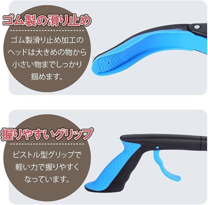 ・クリップの先端部分にはゴムがついており、すべりづらい設計。ペットボトルや缶など大きめの物から紙類、タバコ、落ち葉など小さい物もしっかり掴めます。