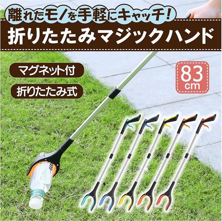 商品説明 ゴミ拾いや清掃作業に最適。ちょっと手の届かない場所のものを取りたい時に。 便利な83cmのロングタイプの折りたたみ式マジックハンドです。