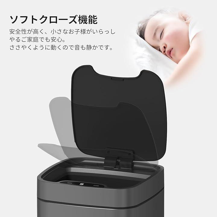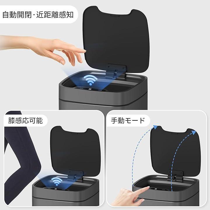 「人体センサー機能」 この自動ゴミ箱には人体センサー機能を付けされており、赤外線運動センサーエ リアの上で手を振るだけで、蓋が自動的に開けます。