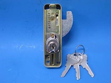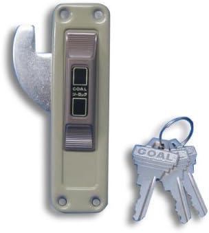 ゴール社(GOAL)から発売されている5本ピンシリンダータイプの本締鎌錠(引戸用補助錠)です。シリンダー部はステン色で、子鍵は3本ついています。