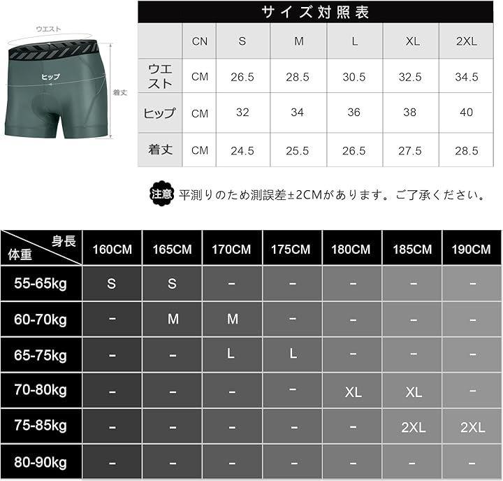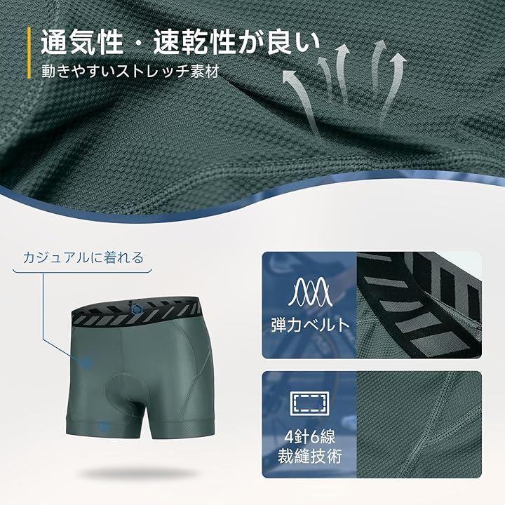 「機能仕様」スポーツバイクに乗るときに履く、お尻の痛みを軽くしてくれる、パッド付きのサイクルインナーパンツ。