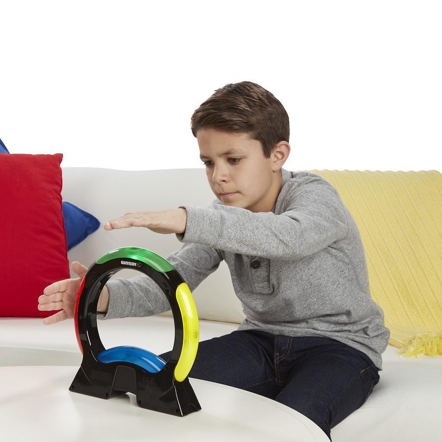 クラシックなサイモン ゲームを現代風にアレンジ: サイモンエアは、プレイヤーの動きを感知することで、光のパターンを認識する、テンポが速く楽しめるゲームです。タッチフリーテクノロジー:サイモンエアは、触る必要がありません!色が光ったら、プレイヤーはその色の上に手をかざしたり、急降下したり、方向転換したり、触らないで遊ぶことができます。動きをマスター:勝つために動きをマスターしよう!8才から遊べるこのゲームでは、プレイヤーは光のパターンを見て、覚えて、繰り返します。もしかしたらレベル16に到達できるかもしれません。3つのゲームモード:クラシック、シングル、ダブルスの3つのモードが選べます。クラシックモードでは、ライトが1個のみ点灯します。シングルモードでは、ハイスコアを更新しましょう。ダブルスモードでは、二人で協力して勝利を目指しましょう。ゲームユニットが得点を記録: プレイヤーが光の追跡ができなかった場合、サイモン エアは一連の光と音を使ってスコアを表示します。次回のファミリーゲームでは誰が勝つでしょう?