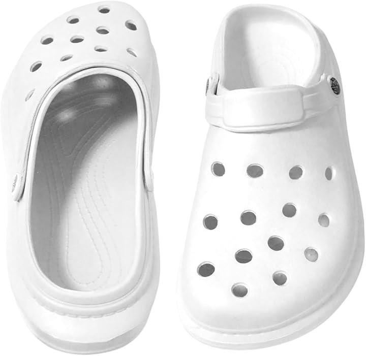 長時間履いても疲れにくい、驚きのクッション性:足圧分散設計された独自の厚底ソールが衝撃を吸収し、立ち仕事や長時間歩行の疲れを和らげます。