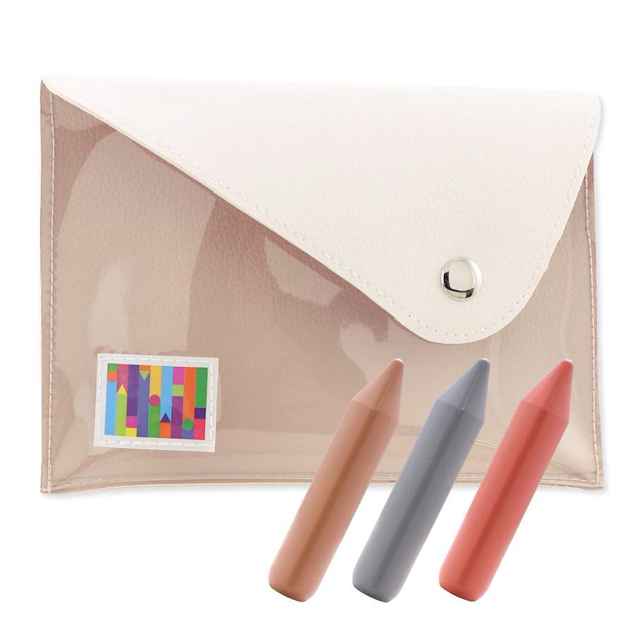 色:フェミニンカラー ●クーピーマーカーポーチ型ケースセット・創業100周年記念の限定商品・くすみカラーが可愛く、手帳やノートに馴染みやすい色合い。・全2種類●クーピーマーカー・「ラインマーカーなクーピー」。蛍光ペンにはない、ふんわりとした手書き感で色づけ、書ける・インクではないので、手で直接持ちキャップレスで使える。・かすれやインク切れの心配なし。手帳やノート、辞書などの薄い紙でも裏うつりしない・【本体サイズ】1.4×1.4×7cm/【本体重量】9g/本●ポーチ型ケース・クリア素材を使用しているので、クーピーマーカーの可愛い見た目が外から見える。フェイクレザーも使用しており高級感がある。・すでに持っているクーピーマーカーも収納することができる。・ポーチや小物入れとしても使用できる。